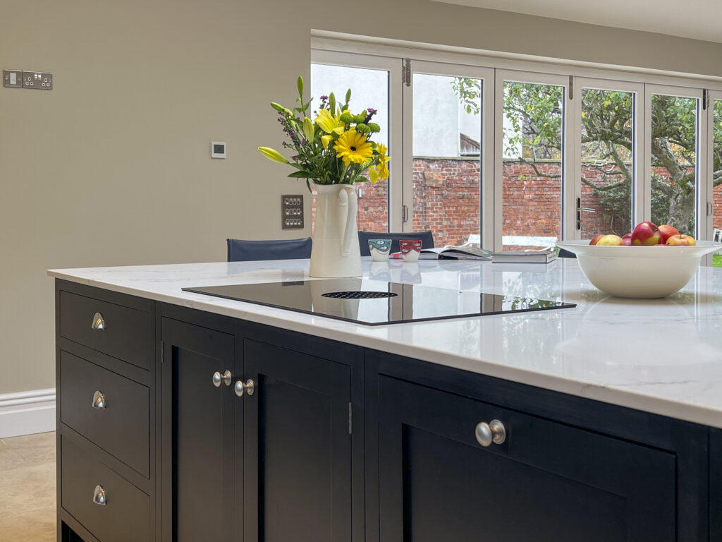 Our clients combined ‘Portland Stone’ and ‘Jack Black’ both from The Little Green Paint Co for their brand new kitchen in their new extension.