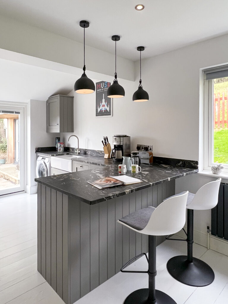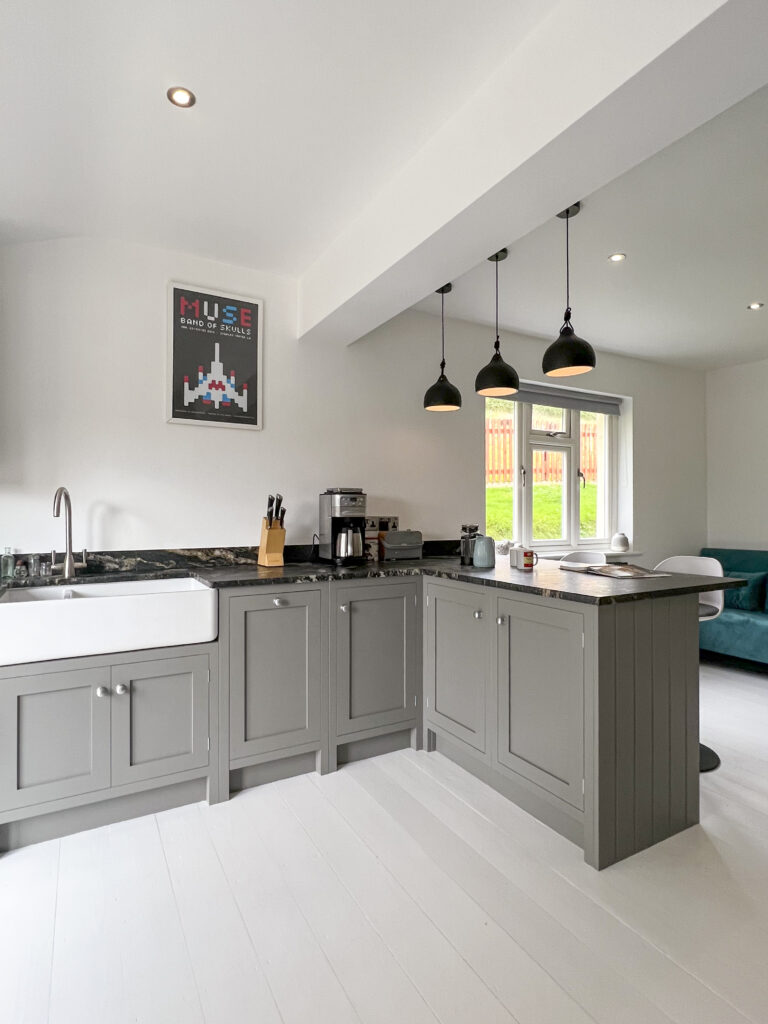 A free-standing Retro style fridge/freezer and a peninsula to sit at were top of the wish-list.
