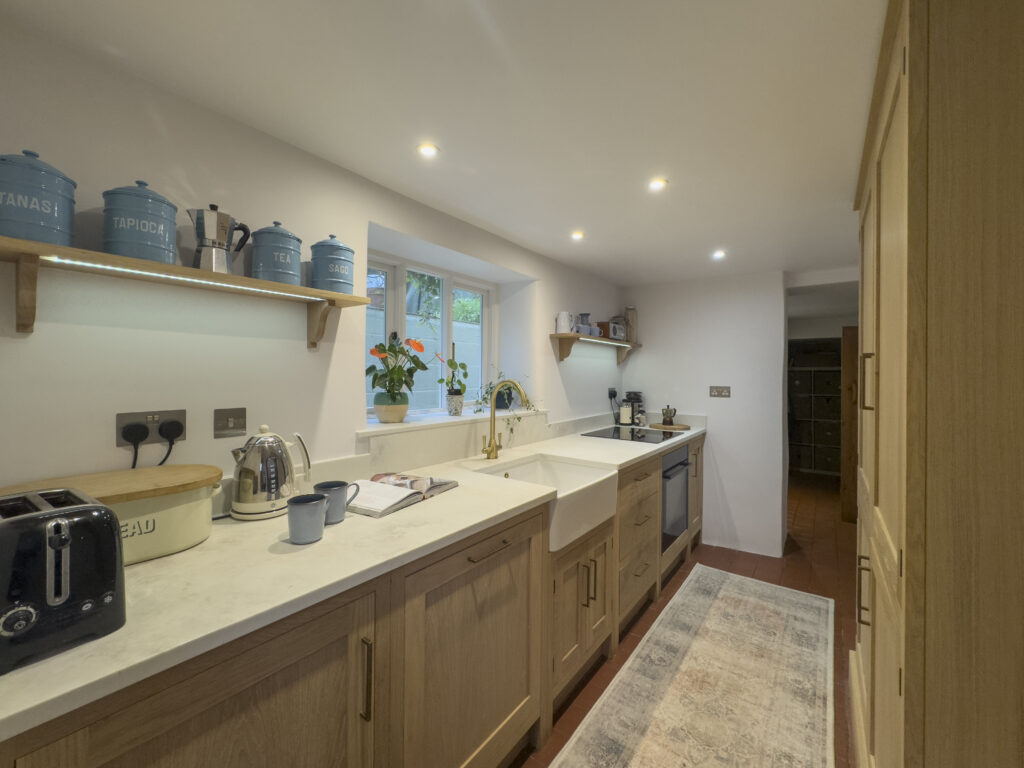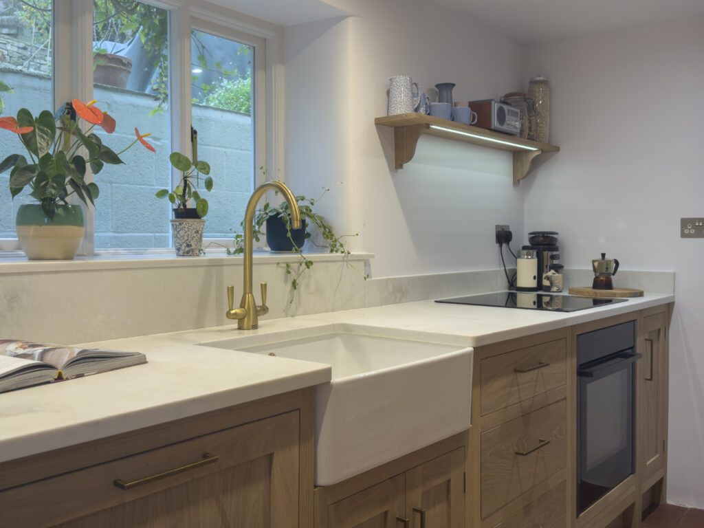That is what our clients wanted and that is what they got. The solid oak cabinetry was finished with a tinted natural oil and was complimented by the ‘Cloudy Gris’ quartz worksurface.