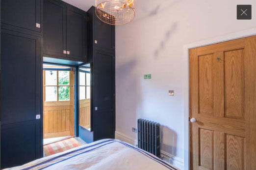 So in the tiny kitchen the team at WCM made cabinets which reach up to the ceiling, and in the lounge they designed yet more huge cupboards (one to house the tv). More cabinetry was built around the back door and then they made the bed and side tables too. Somehow the clever use of space makes it look a whole lot bigger and despite being painted in 'Midnight' eggshell by Dulux it looks bright and sunny too.