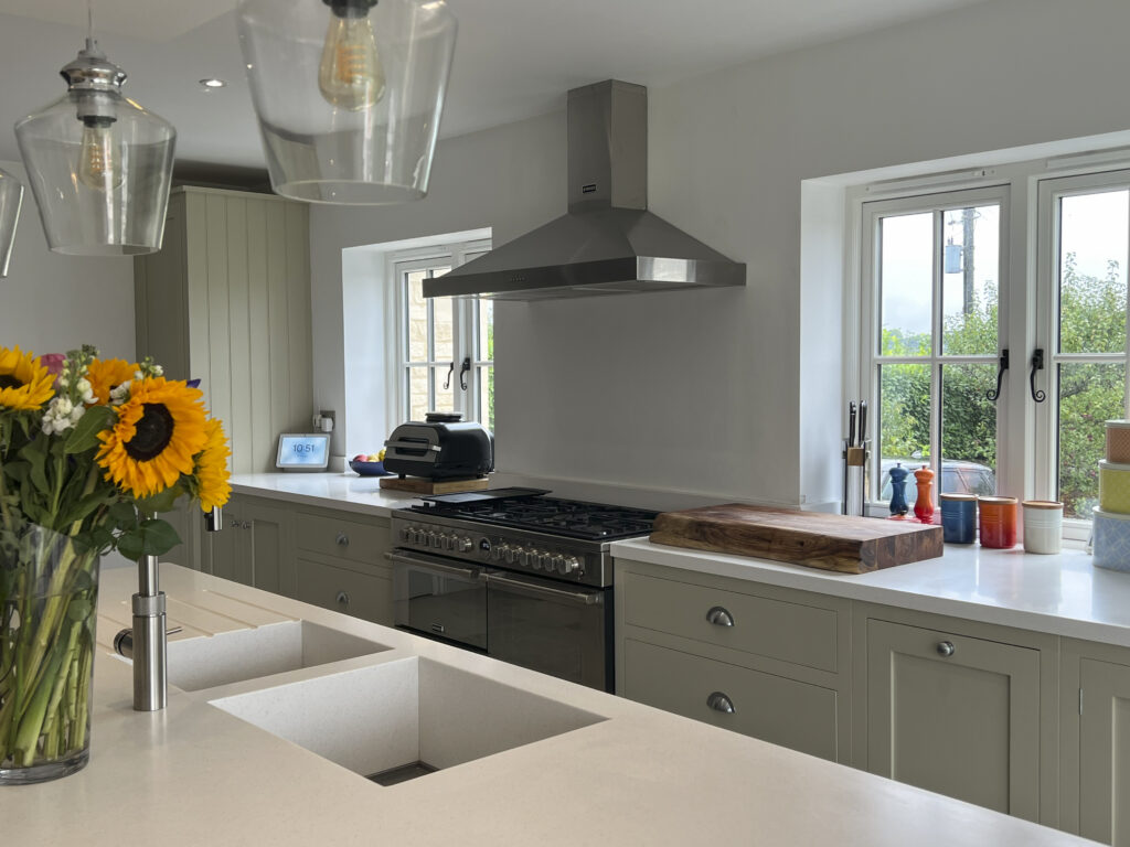 An island with an overhang for stools, sinks and dishwashers was a must for this new kitchen we have just finished in a brand new extension.